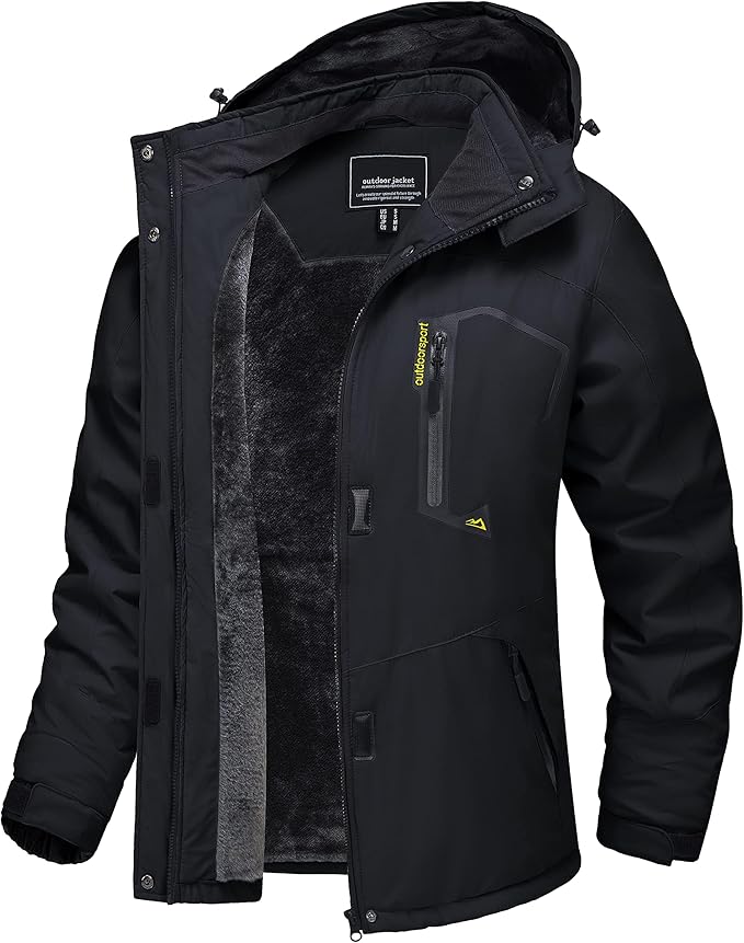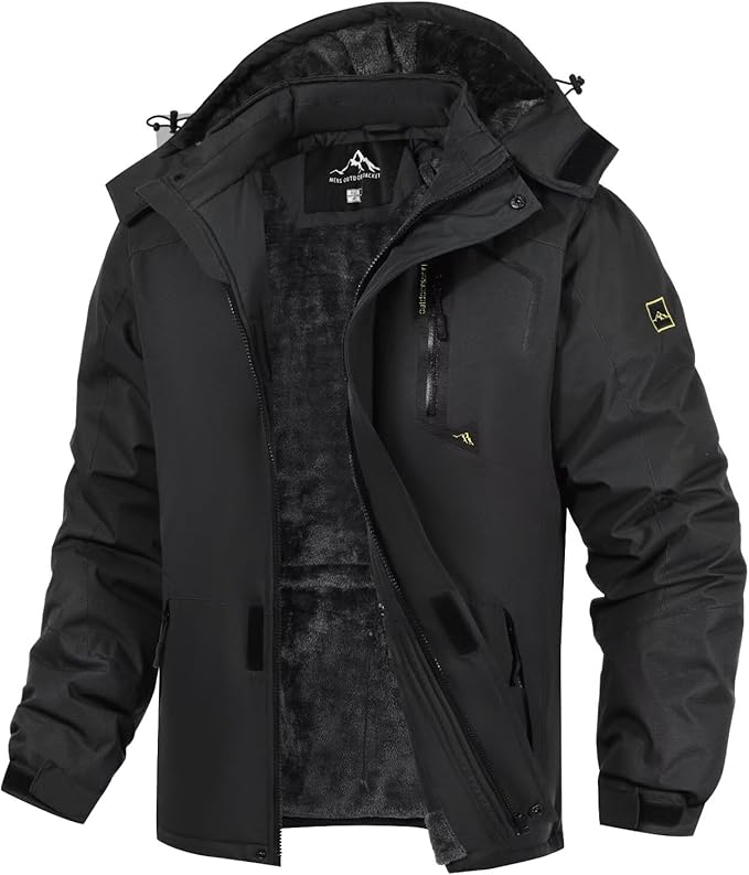 Mens coats winter: Outer 100% Polyester – resistant to wind and water; lining 100% Polyester.